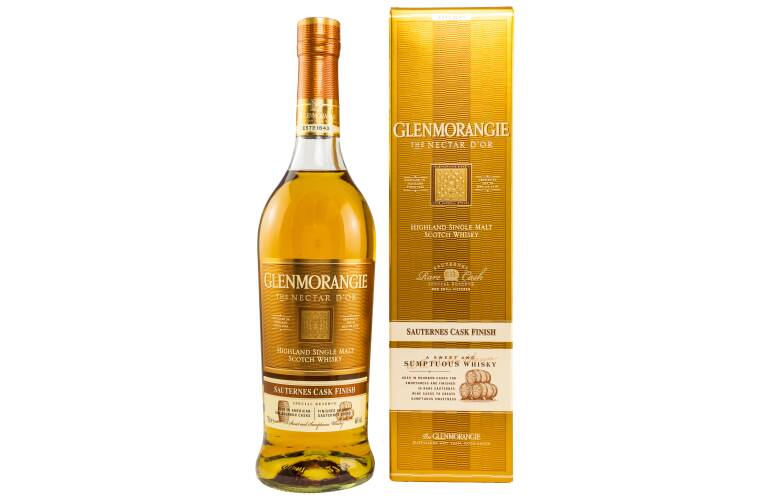 Der eindrucksvolle Single Malt Whisky Nectar D'Or wird aus dem köstlichen, komplexen Jahrgang des ursprünglichen Glenmorangie hergestellt, der mindestens zehn Jahre in sorgfältig ausgewählten Sauternes-Fässern gereift ist. Das Ergebnis ist ein reichhaltiger, üppiger Whisky mit verführerischen, attraktiven Keksaromen und Noten von Zitrone, die für ein unvergessliches Erlebnis sorgen.
